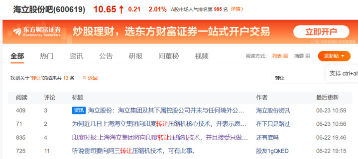 近日,有网友在股吧发帖称,“上海海立集团将向印度转让压缩机技术,并且接受只做小股东”,引发市场关注。